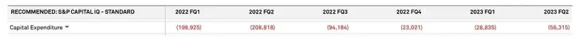 2018–2022 财年,Riot 的 Capex 分别为 20mln, 6.4mln, 41mln, 421mln, 343mln; Riot 23Q2 的 capex 为 56mln