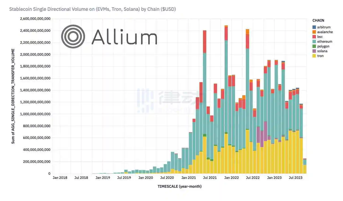 「Tron 上的稳定币活动比任何其他区块链上都多。今年迄今为止,Tron 区块链上的交易占每周活跃地址的 49%、交易量的 37% 和交易量的 35%」——Brevan Howard