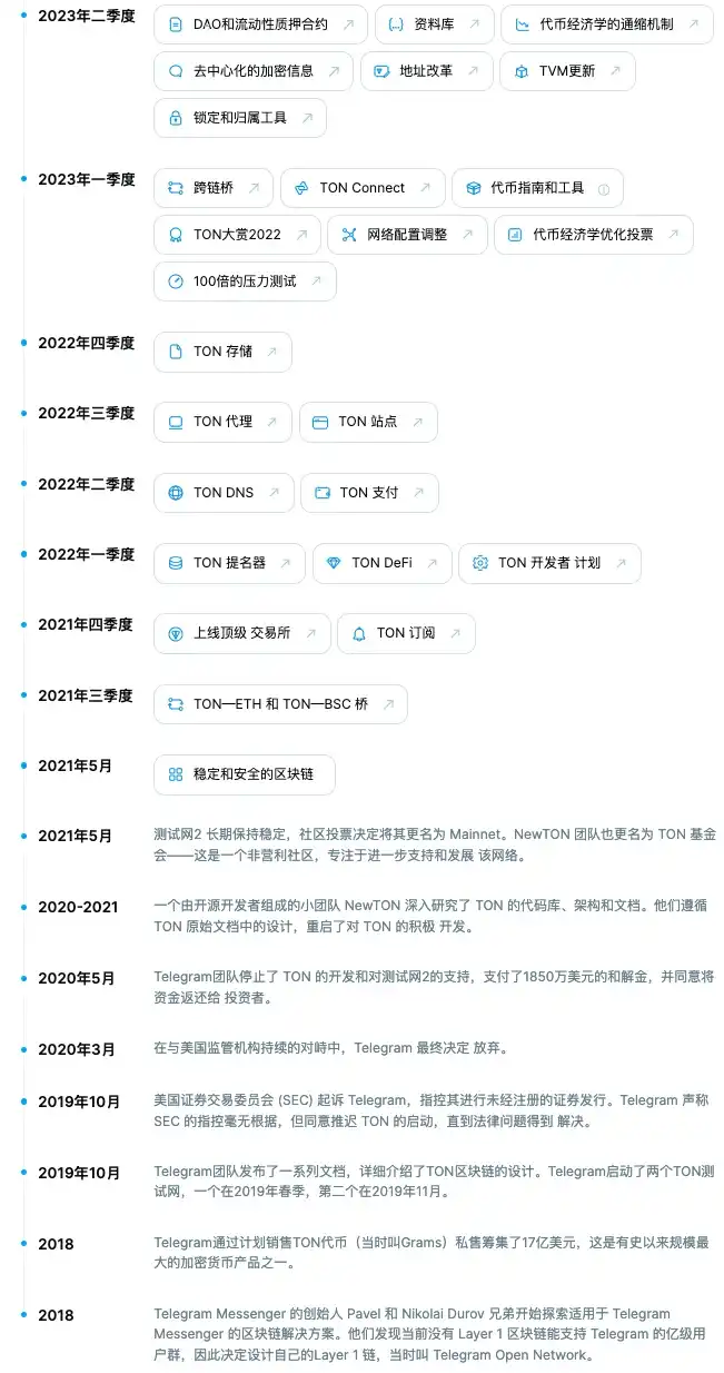 - 2018 年,Telegram 团队开始探索适用于 Telegram 的区块链解决方案,并设计了 TON 区块链。