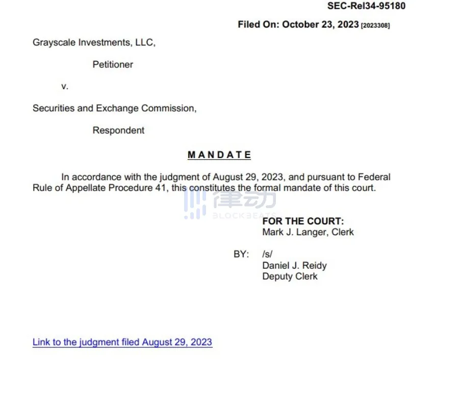 法院就灰度诉美 SEC 案做出最终裁决,将比特币 ETF 的批准权交回美 SEC