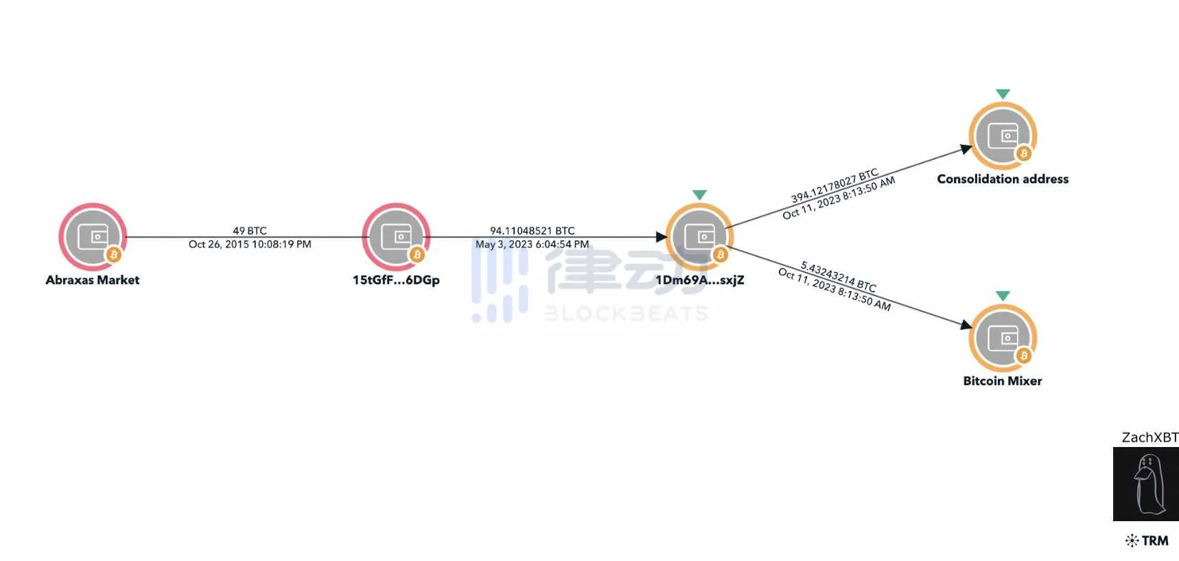ZachXBT:已跑路暗网市场 Abraxas 转移约 4800 枚 BTC,疑为 Abraxas 管理员所为