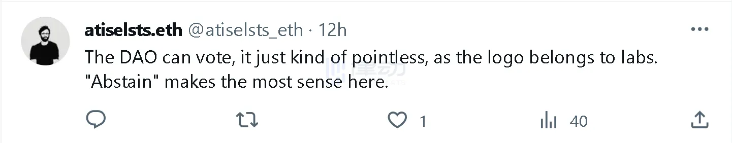 @atiselsts_eth 表示,DAO 可以投票,但这毫无意义,因为 logo 属于 Uniswap Labs。「弃权」在这里最有意义。