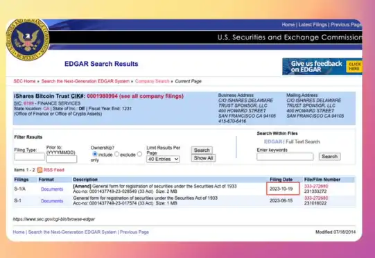 提交的审核公示了(是允许提交,而不是审核通过),很多人都在转发新闻但是没有去求证,我去查了美国证券交易委员会(SEC)的 EDGAR 数据库