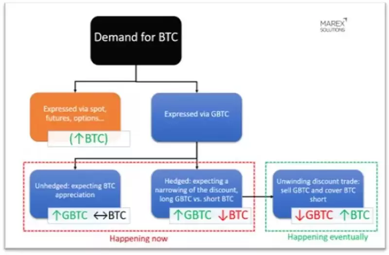 投资者一直在买入 GBTC,同时卖出 BTC 期货,以从折扣收窄中获利。(Marex 解决方案)(Marex 解决方案)