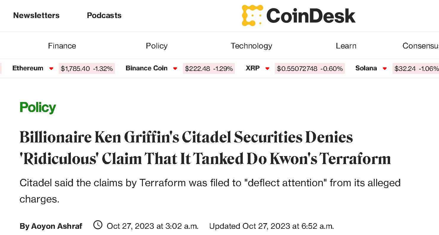 · Citadel 否认指控,称 Terra 意图掩盖与 Jump Trading 合谋