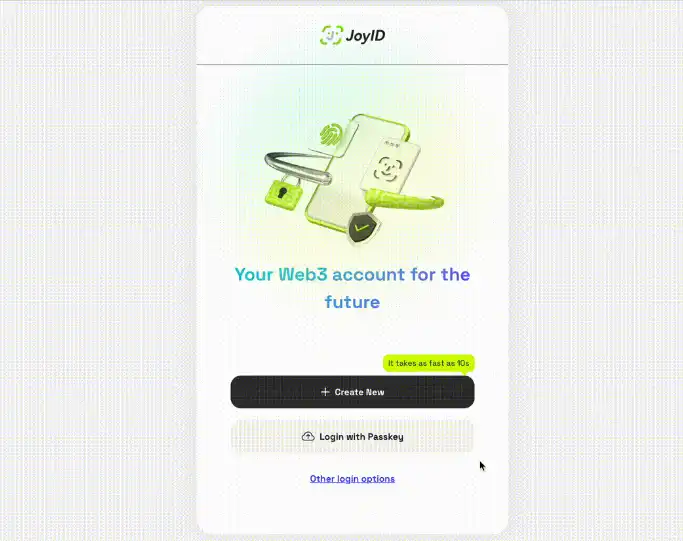 实际产品体验上,JoyID 的整个流程非常丝滑流畅,用户不需要输入任何信息,直接两次系统认证即可完成钱包创建。全程只需要几秒钟时间,中间也不需要支付任何费用。目前看是所有 Passkey 钱包中最完善,也是最成熟的方案。