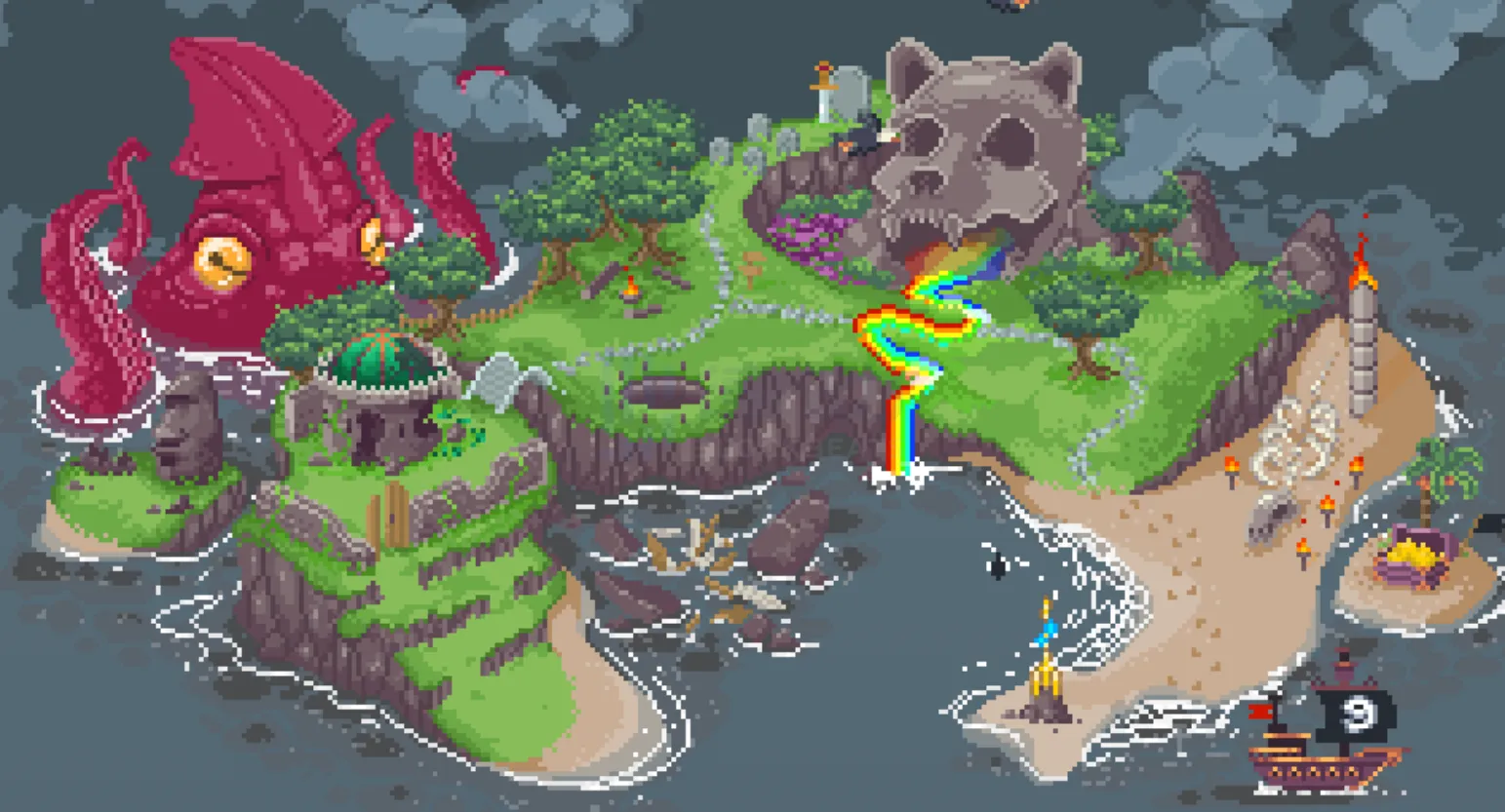 Memelands 的官方总览图显示了它们提供的内容,埋藏宝藏的小岛、未知的海域、巨大的海怪、海盗船员、发射器等等,Memelands 中的每个元素都以时尚且具有视觉吸引力的图像形式呈现。