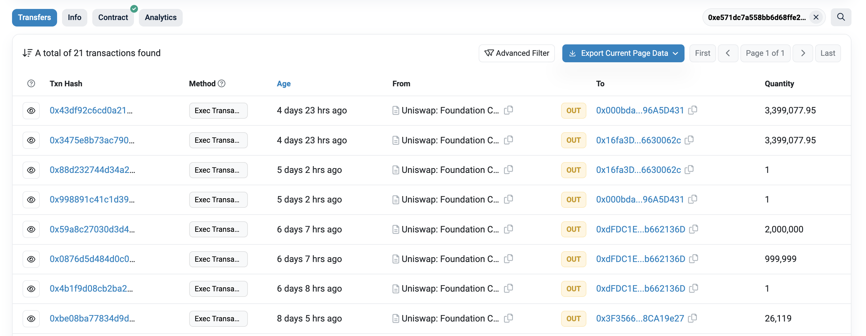 Uniswap 基金会过去一周转出超 4000 万美元代币