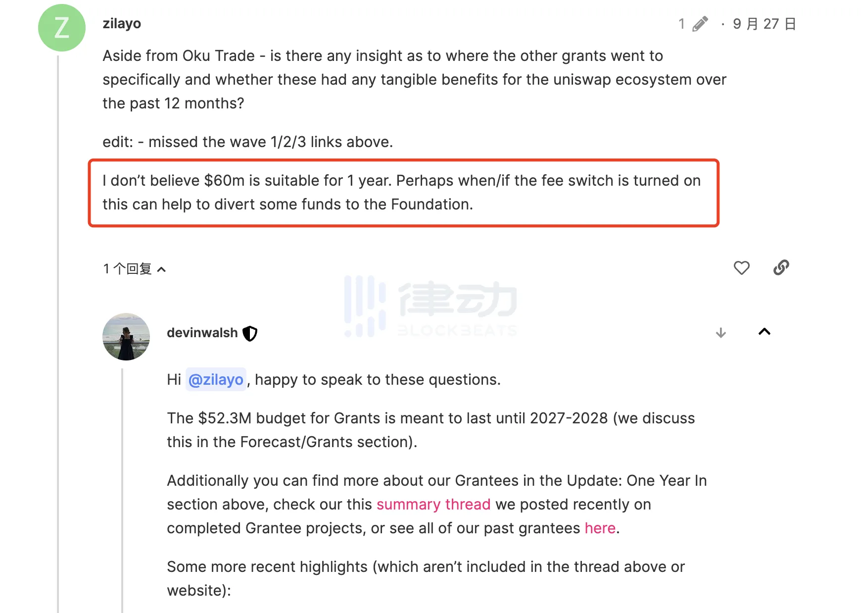 但在当时的提案讨论区中,有人对 6000 万美元的资金提出质疑,认为其不合适。提案人 devinwalsh 表示,其中「5230 万美元的预算预计将持续到 2027-2028 年」。