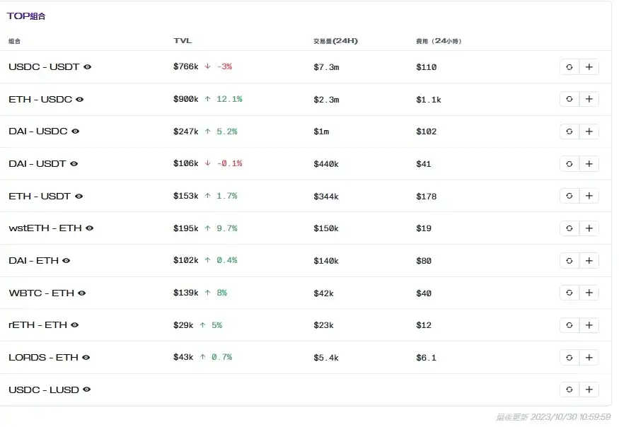 而从官方披露数据来看费率相较其他 DEX 非常之低,USDC-USDT 交易对费率预估为 0.0015% ,ETH-USDC 交易对费率为 0.0478% 。