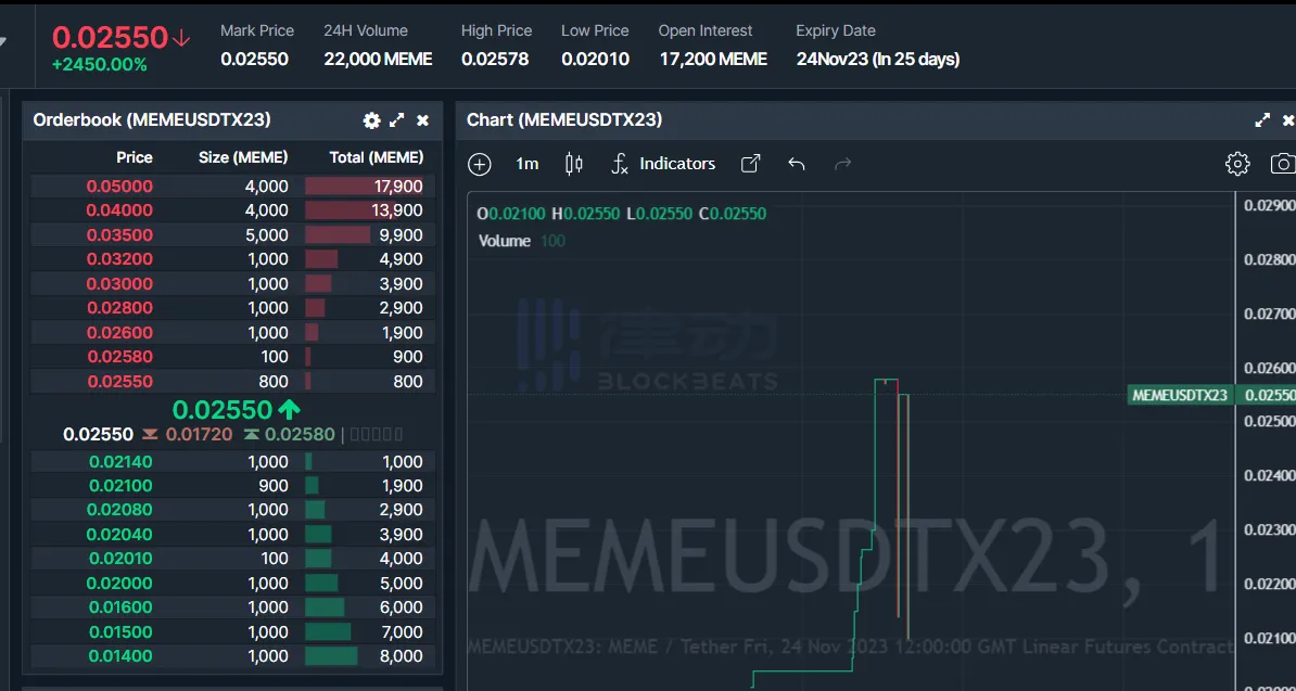 BitMEX 上 Memecoin 期货价格暂报 0.0255 美元