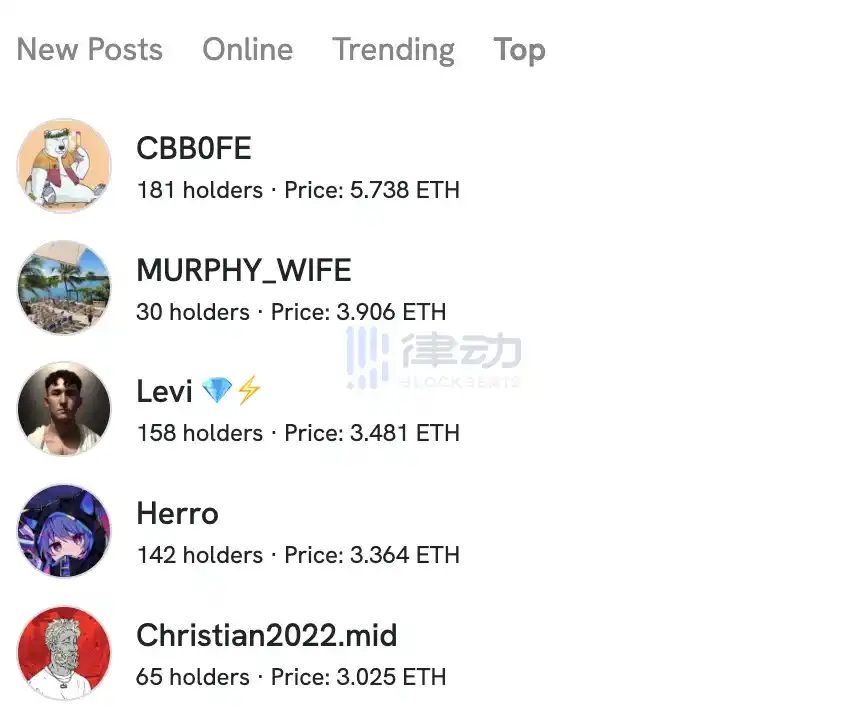 friend.tech「Keys」价格排行榜:加密 KOL CBB0FE 以 5.738 ETH 位列第一