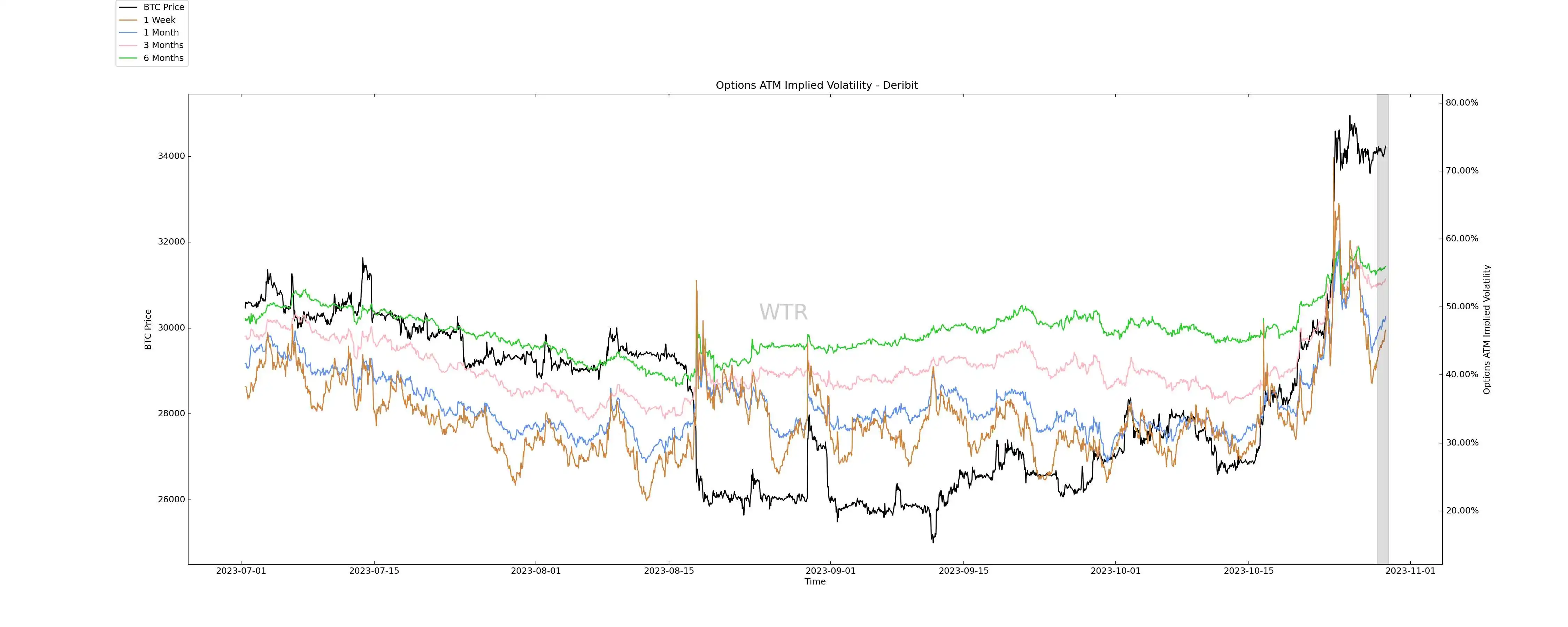 价格的拉升使得期权隐含波动率也进⼀步提⾼。