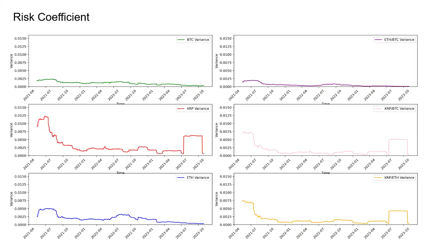 与单一代币的合约交易相比,汇率合约的风险通常较小。这是因为它们基于两种代币的相对价值,而不是一个单一代币的价格波动,下图展示了同一周期内的 BTC、ETH 和 ETH 的风险水平(Var 值-75%),从长期来看汇率合约交易对的风险系数更小。