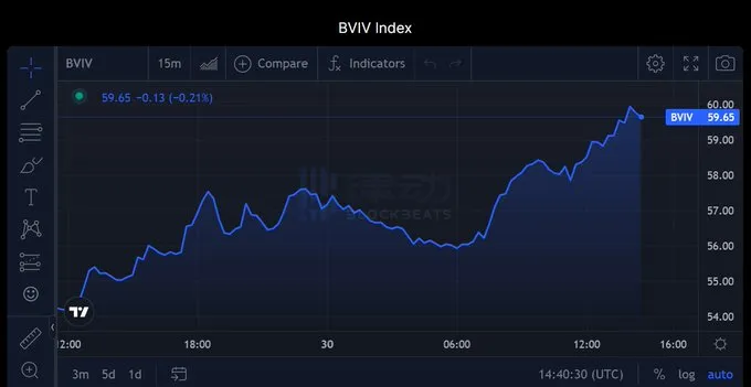 近一周以来,比特币价格在站上三万后就一直在 34,000 美元上下波动。调整之后,比特币价格能否一鼓作气继续上升,市场上的信息还不是非常明朗。从 BitVol(比特币波动)指数图表中可以看出,市场中的比特币期权交易者对比特币价格未来的波动性更加关注,预期价格波动也更大。