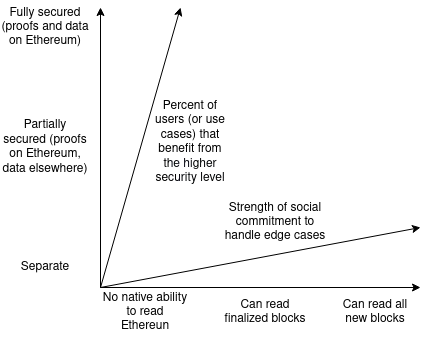 而读取安全性可以通过(i)链路能够多快读取以太坊的区块,特别是最终确定的区块与任何区块的区别,以及(ii)链路在处理诸如 51% 攻击和硬分叉等边缘情况时的社会承诺程度来衡量。