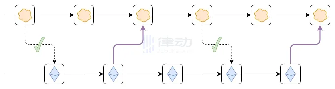 这些紫色的链接可以是哈希链接,也可以是验证以太坊共识的桥接合约