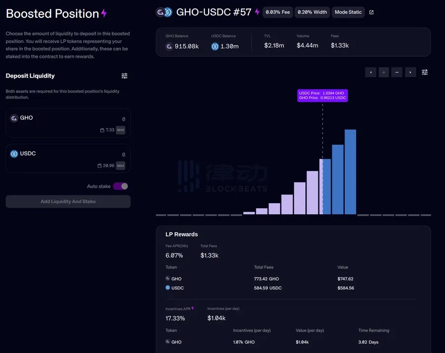 支持 0.95-1.003 GHO 的 Uniswap V3 池