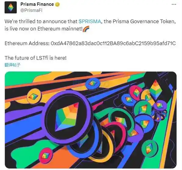 LSD 稳定币协议 Prisma Finance 正式上线治理代币 PRISMA