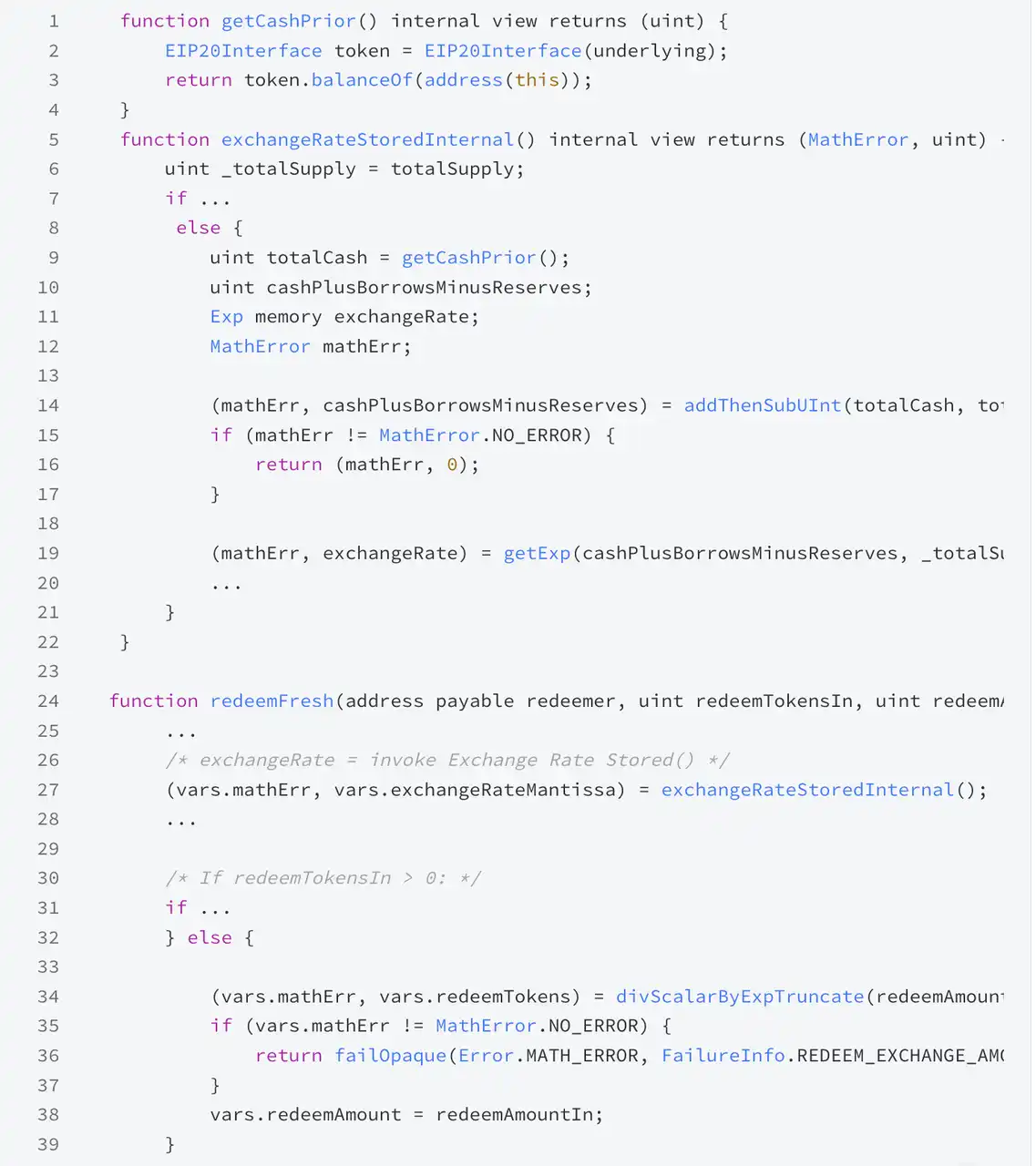 另一方面,精度损失漏洞是攻击的根本原因。黑客操纵了 totalSupply 使其变成一个极小的值即 2,并将 totalCash 增加到极大的值,即 2520870348093423681390050791471,以放大 exchangeRate,从而导致在赎回时产生计算截断。