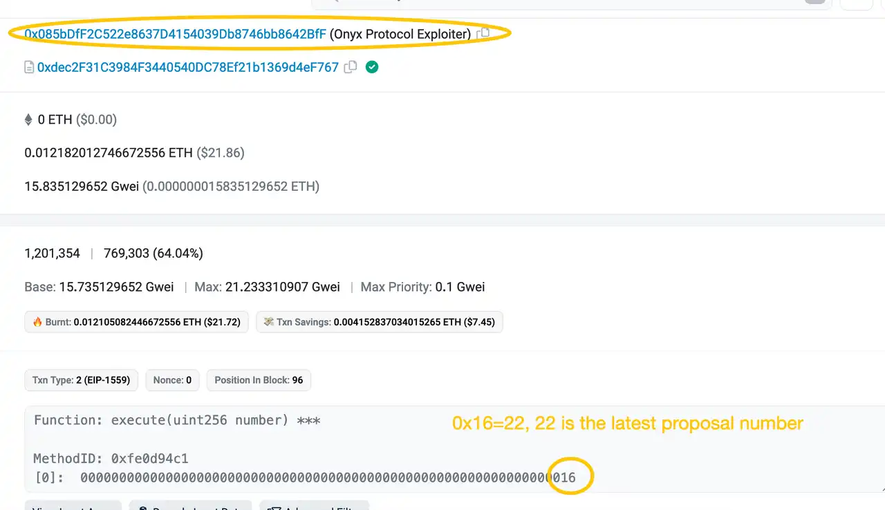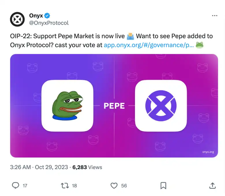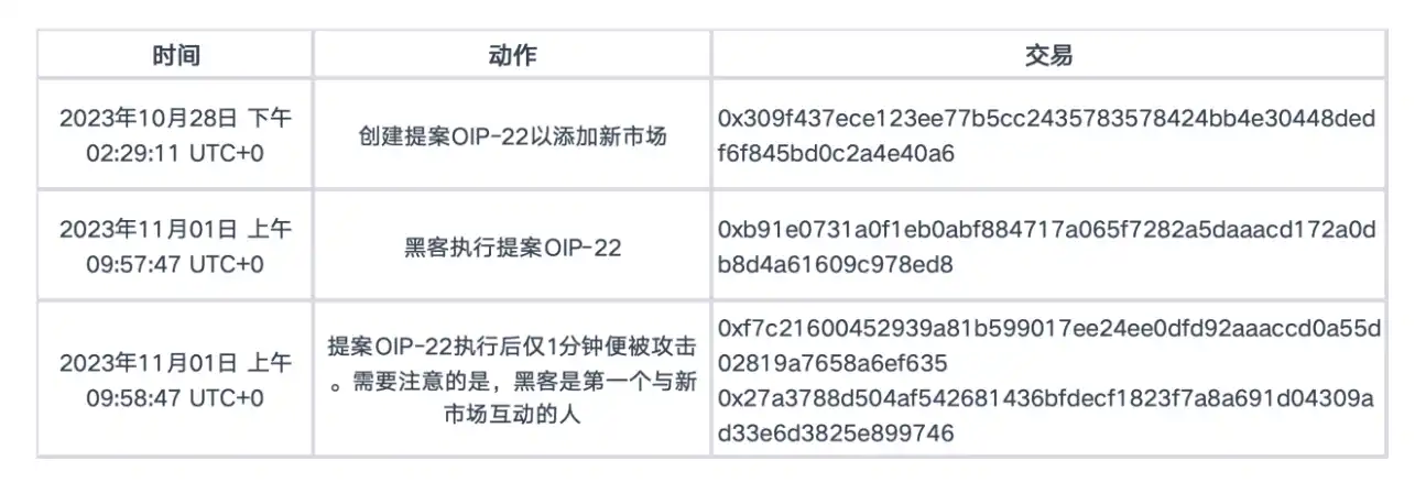 在 2023 年 10 月 29 日,Onyx Protocol(https://x.com/OnyxProtocol/status/1718348637158137858?s=20)启动了提案 OIP-22,以将$PEPE 添加到市场中。然而遗憾的是,该提案被黑客盯上并加以攻击了。