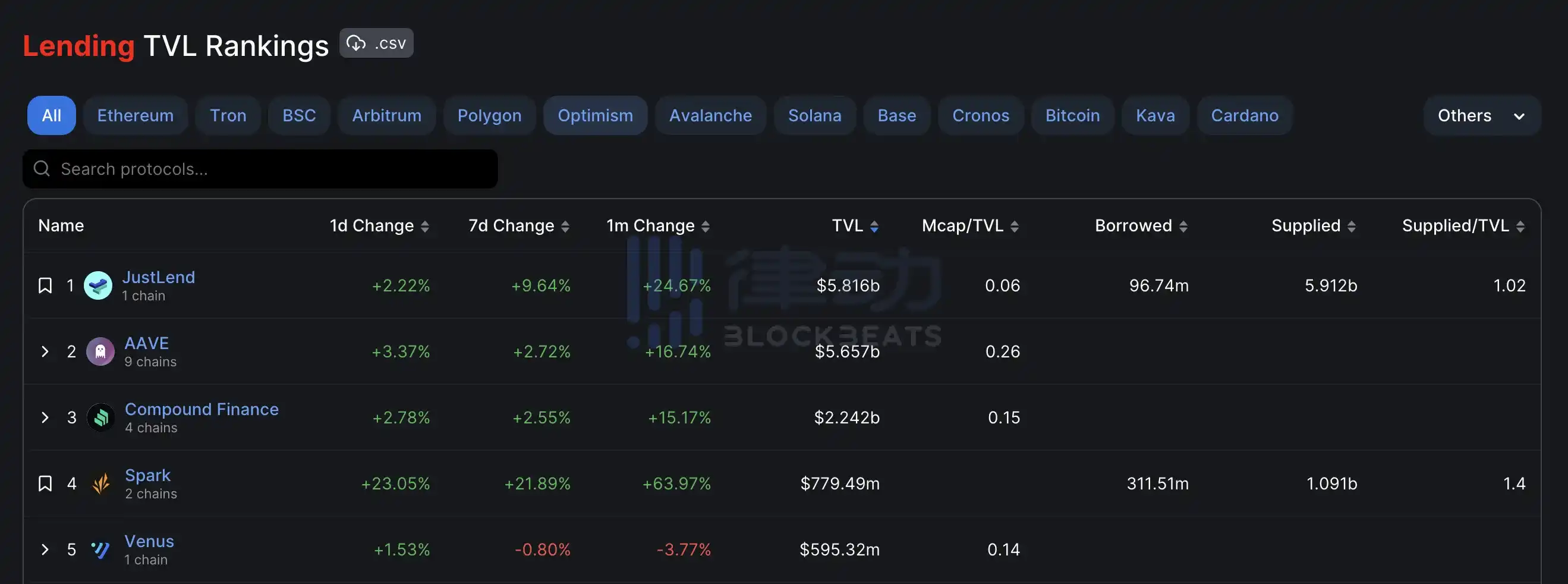 数据:Spark Protocol TVL 逼近 7.8 亿美元,超越 Venus 成为第 4 大借贷协议