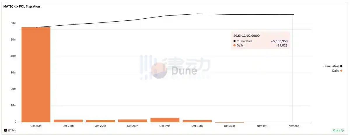 数据:以太坊上已有超 6550 万枚 MATIC 迁移为 POL