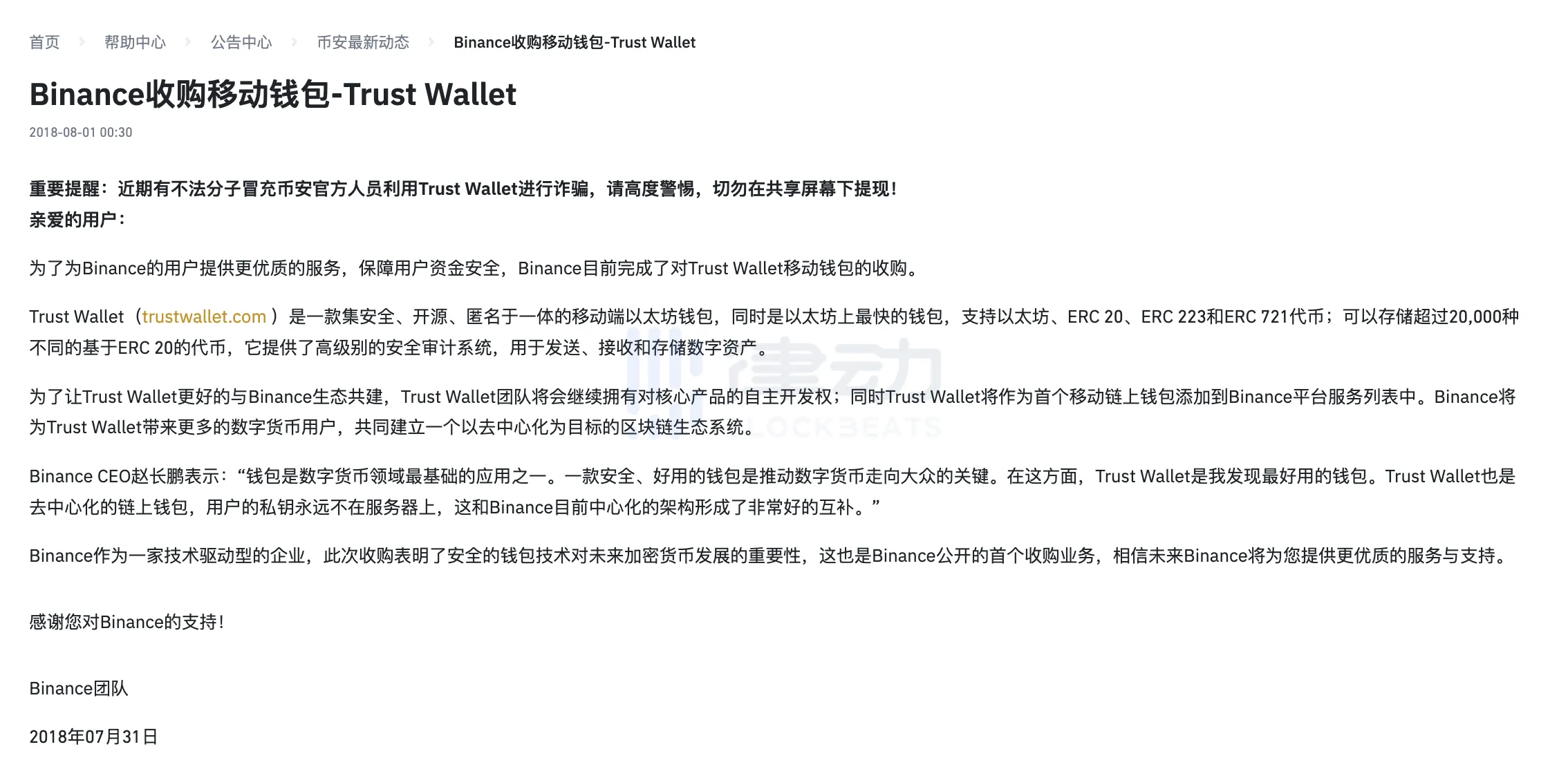 同时,Trust Wallet 中文频道转发 的推文提到,Binance 的 Web3 钱包由 Trust Wallet 团队提供支持。