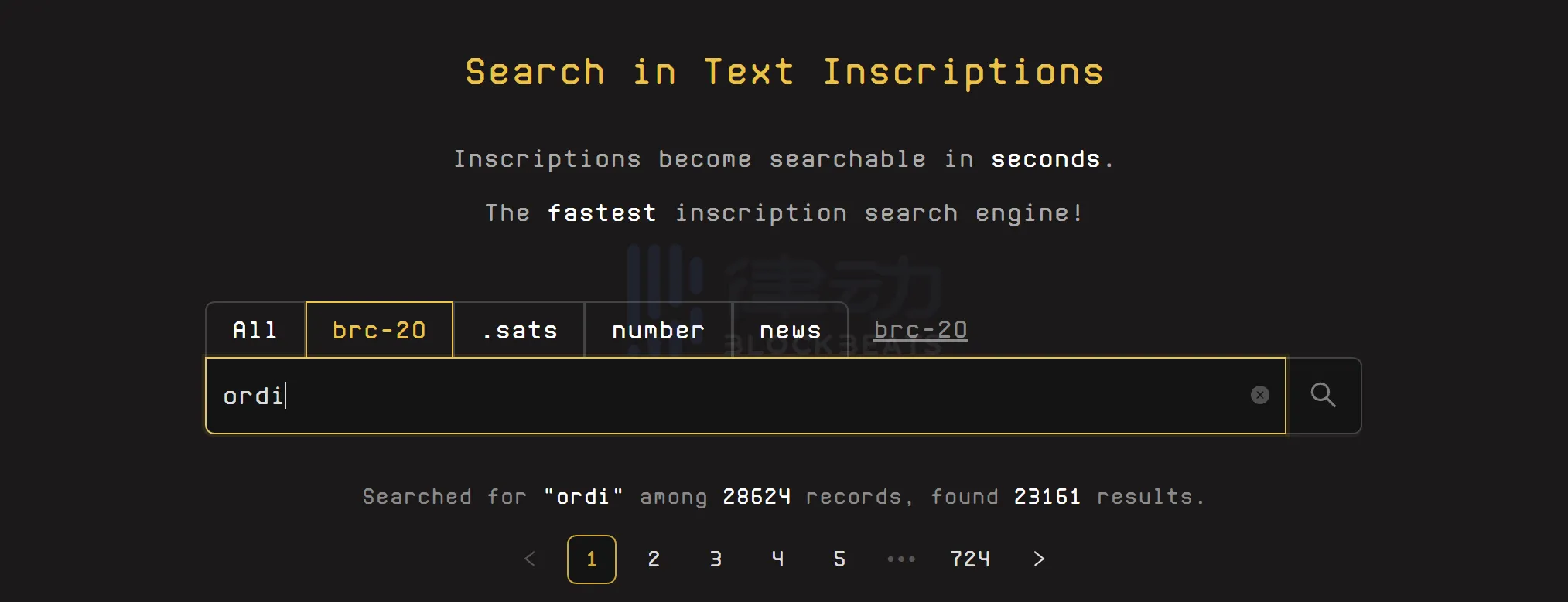 $ordi 是第一个被部署的 BRC-20 Token。通过 UniSat 的 BRC-20 搜索功能,可以看到目前已经有 23161 个与 $ordi 铸造相关的铭文。