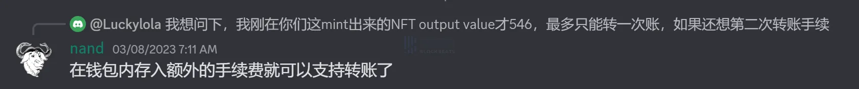 对此,官方在 Discord 的答复是「在钱包内存入额外的手续费就可以支持转账」。