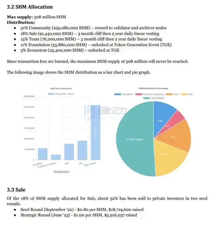 4.Shardeum 白皮书披露:SHM 代币设定 5.08 亿上限,51% 将分配给社区作为节点奖励;