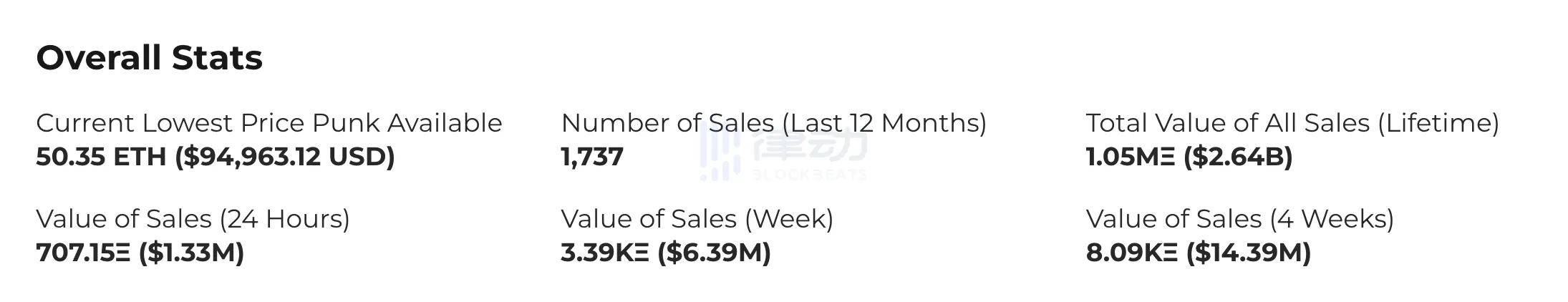 消息,11 月 9 日,据官网页面显示,CryptoPunks 系列 NFT 地板价已回升至 50 ETH 上方。