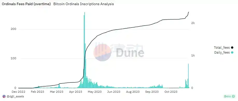 数据:昨日 Ordinals 铭文费用超 80 BTC,创近半年新高