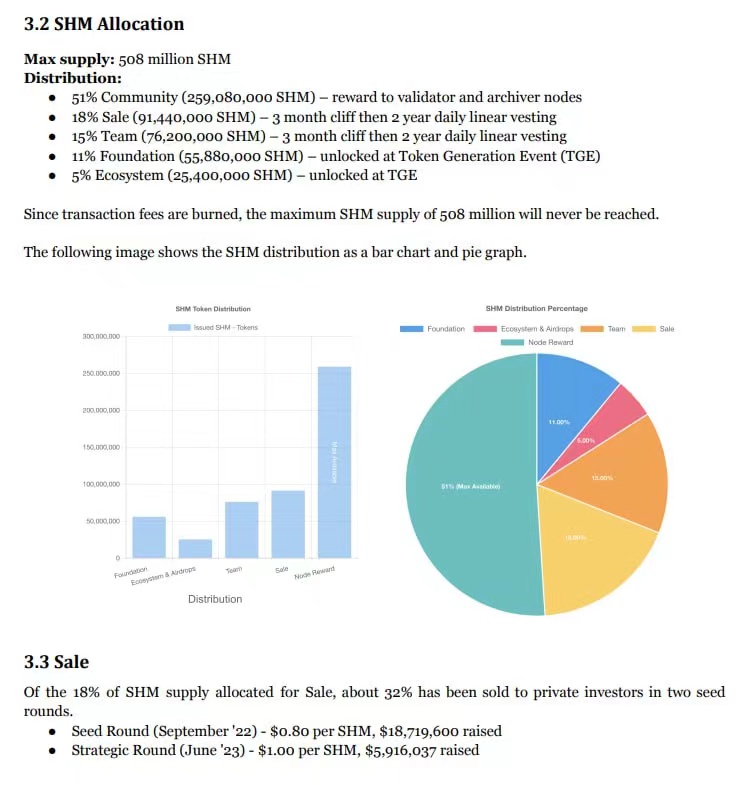 Shardeum 白皮书披露:SHM 代币设定 5.08 亿上限,51% 将分配给社区作为节点奖励