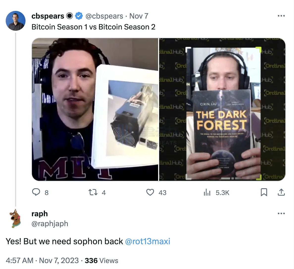 社区里对 Sophon 的存在褒贬不一,有人认为这是利好已经部署的 BRC-20 代币,也有人说这是比特币 OG 的复仇,保护比特币免受 BRC20 的粉尘攻击。因为连 Ordinals 协议首席维护者 raph(@raphjaph)也在打趣比特币生态的推文评论区中呼吁我们需要 Sophon。