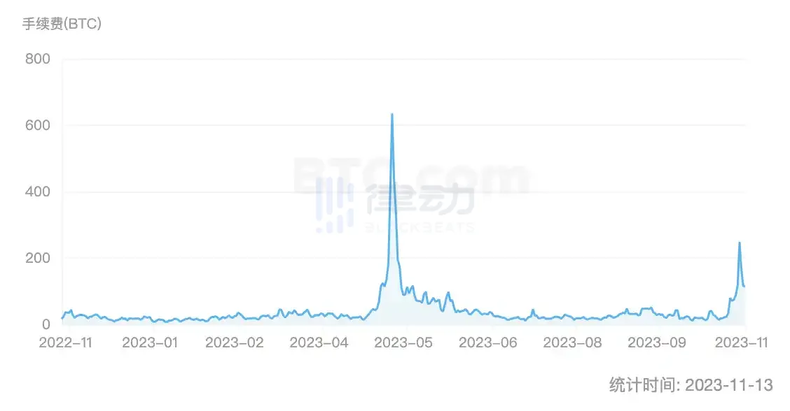 上周比特币全网手续费约 923 BTC,创下 5 月中旬以来最高点