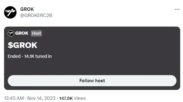在这则推文发出 45 分钟后,GROK 团队紧急发起了 space 作为回应,但并没有给出有效的信息,难以平息 GROK 投资者的情绪,有人评论道,「这是我参加过的最糟糕的 space。为了你糟糕的公关技巧,我卖掉了我所有的 GROK」。