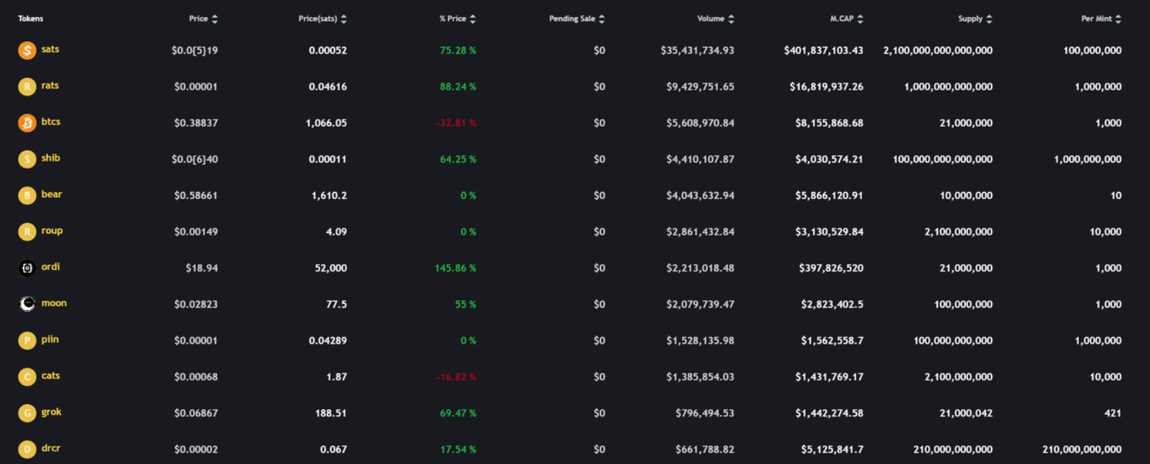 尽管今年走出了 Ordi、Sats 等涨幅巨大的 BRC20 明星资产,其他如 Rats 等也涨幅不小,但是同时期发行的大部分 BRC20 资产都是归零走势,在发行后的一两个月内就完全丧失了流动性。
