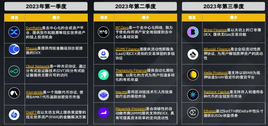 注:上述列表所含项目并不全面。对于提及的任何特定项目,Binance 不做推荐,也不提供背书。