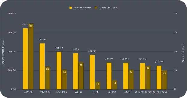 尽管 2023 年出现了下滑趋势,但市场仍表现出了韧性,交易和投资保持稳定增长。在这一持续增长中,链游和基础设施项目占据了相当大的份额。