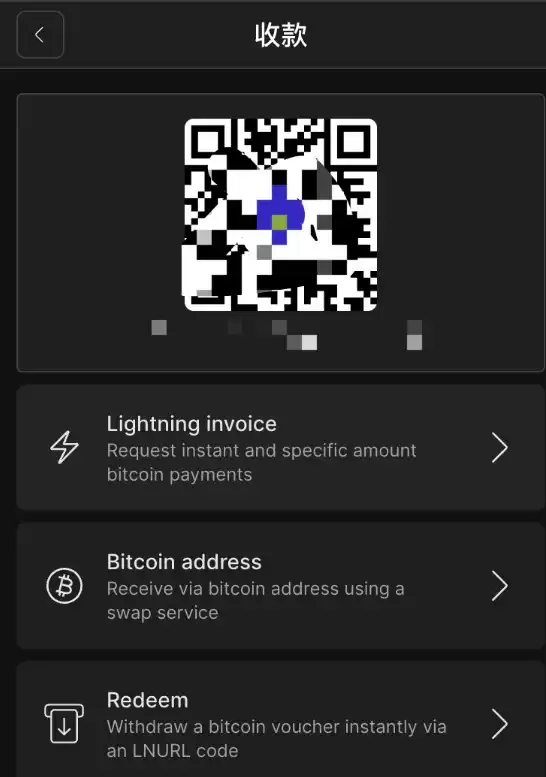 4、打开交易所→提币→网络选择 BTC Lighting→扫描上述 invoice 二维码 (注:部分新用户目前无法充值到 Alby,但是可以让别人通过 Alby 给自己 LN 地址转账,就可以用 invoice 充值了)