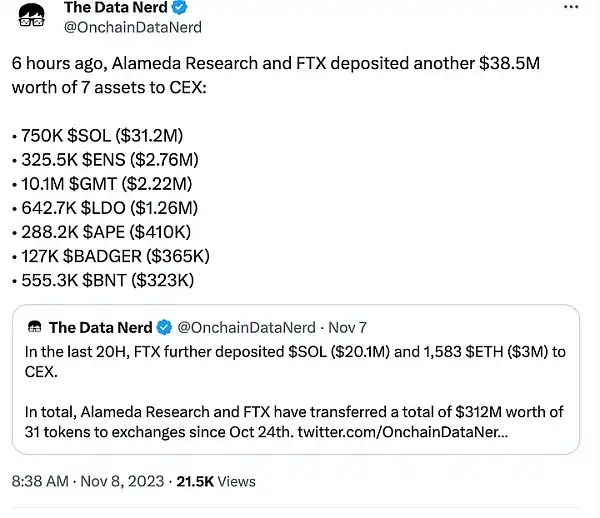 各方正在利用这次上涨的机会出售他们的资产。这包括项目开发团队、OG(如 Vitalik)以及陷入困境的交易所(如 FTX)。