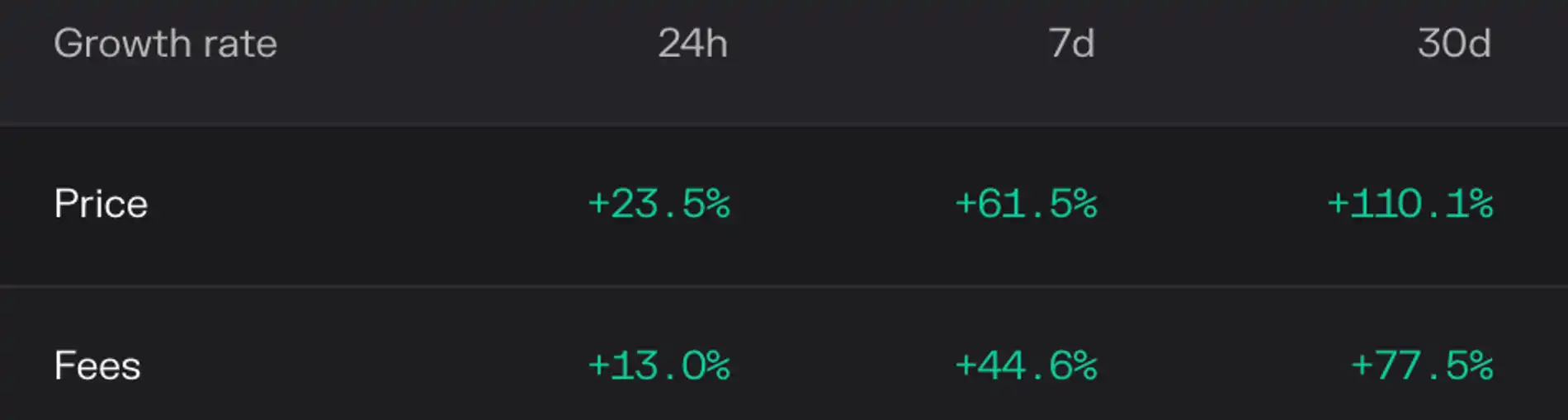 综上所述,我们认为在 dYdX 应用链迁移完成,代币经济模型升级更新的影响下,**dYdX 的基本面有稳中向好的增长趋势,DYDX 代币也能够进一步捕获 dYdX 的价值增长。**同时,自 10 月 25 日以来,加密市场整体行情回暖,波动率和流动性显著提高。DYDX 代币价格的大幅上涨也反映出市场对于后市行情能够继续延续、平台交易量将持续扩大,并带动手续费收入持续增长的乐观预期。