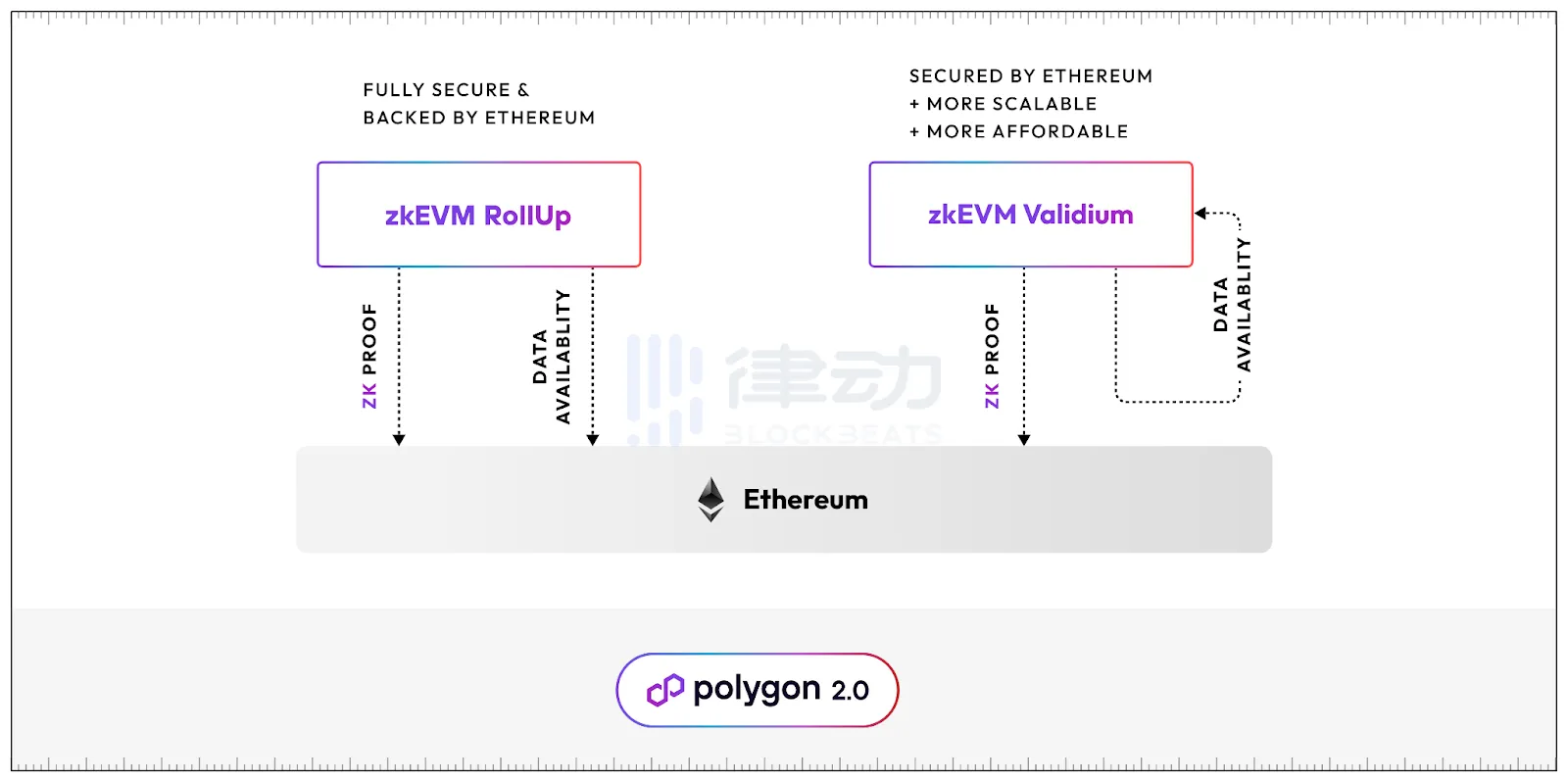 在宣布 Polygon 2.0 后不久,Polygon 团队还公布了将其原始的 Polygon PoS 链转移到最终 Validium 形式的官方计划。这次迁移,它将正式启动 Polygon 2.0 愿景,将创建一个与前述的 Polygon zkEVM 完全不同的链,并将拥有极其便宜、亚分交易费用以及极高的吞吐量潜力。