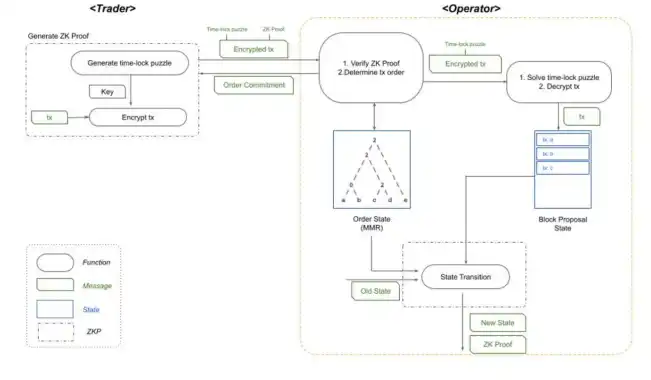 4)Radius 与其他方案的实现机制均不同的是它通过启用加密 Mempool 和让多个排序器同时运行来确保 Rollup 交易被无需信任地排序,通过这种方式来消除 MEV 带来的相关风险。它采用可验证延迟加密机制(PVDE)【7】来实现 Mempool 的加密,采用零知识证明加密方式来确保交易的无信任排序和防止中心化排序器相关风险。不过用零知识证明来提升安全性的代价是,虽然有 MEV 保护但对用户来说可能会出现交易延迟等问题。Radius 的交易流程如下: