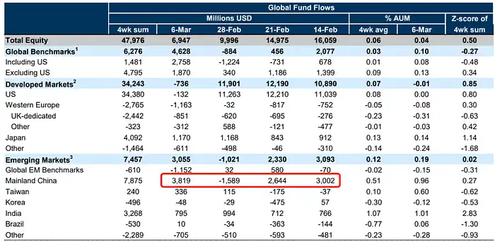 · 中国股市短暂流出一周后再度大幅流入;
