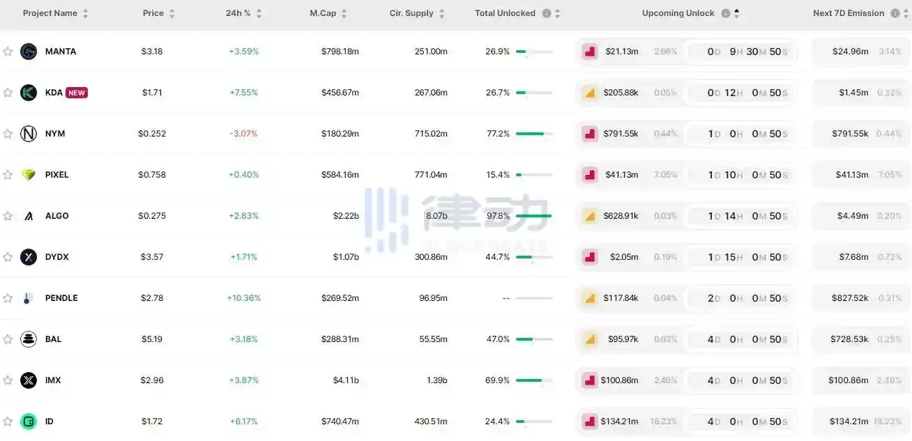 Manta Network(MANTA)将于 3 月 18 日 15:30 解锁 667 万枚代币,价值约 2033 万美元,占流通供应量的 2.66%;