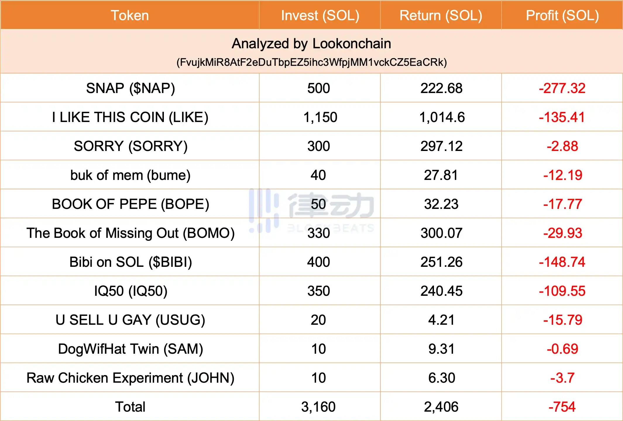 3 月 18 日,据 Lookonchain 监测,某地址在过去 3 日共交易 11 次 Solana 生态模因币,每次交易都以亏损告终,总共损失 754 枚 SOL,价值约合 14.7 万美元。