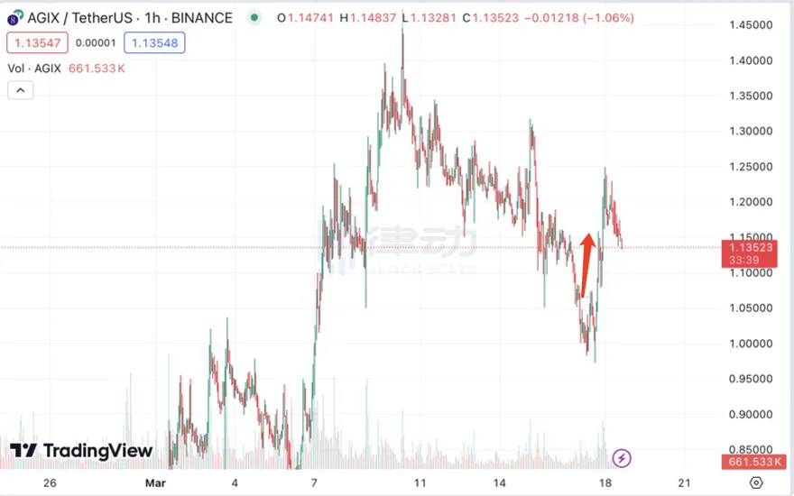 SingularityNET(AGIX)24 小时涨幅 25%;现报价为 1.1 美元。