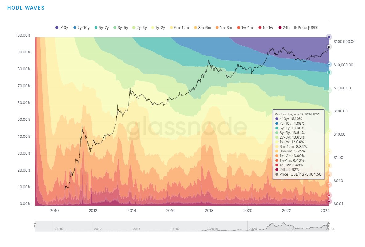 有 32.18% 的比特币在最近一年内移动过,这个数量是 6,324,719 个 BTC,这个数量就是满打满算这一年以内参与过交易的比特币。